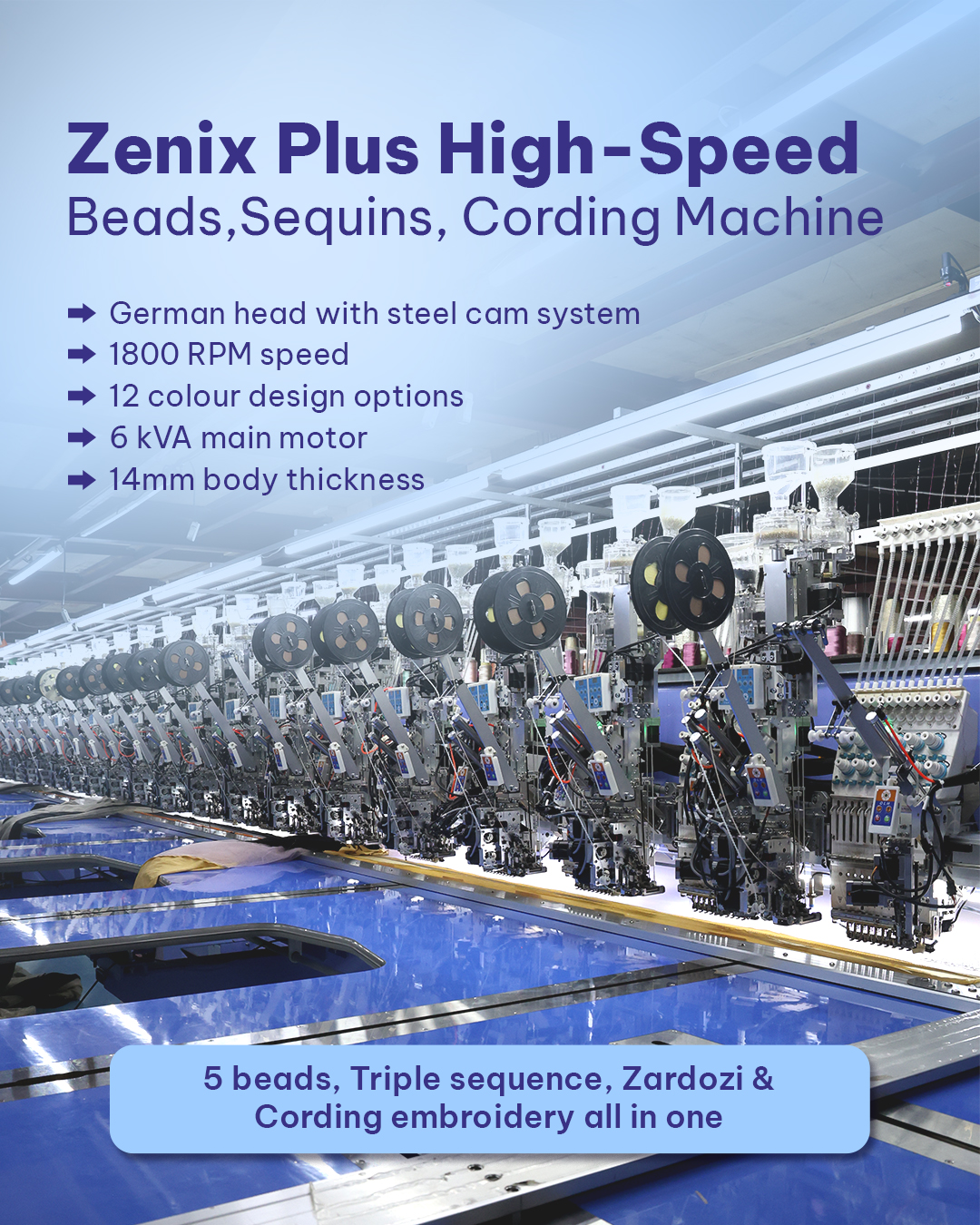 Built for precise 5-type bead embroidery with accurate placement, strong attachment, and consistent long-hour output.
